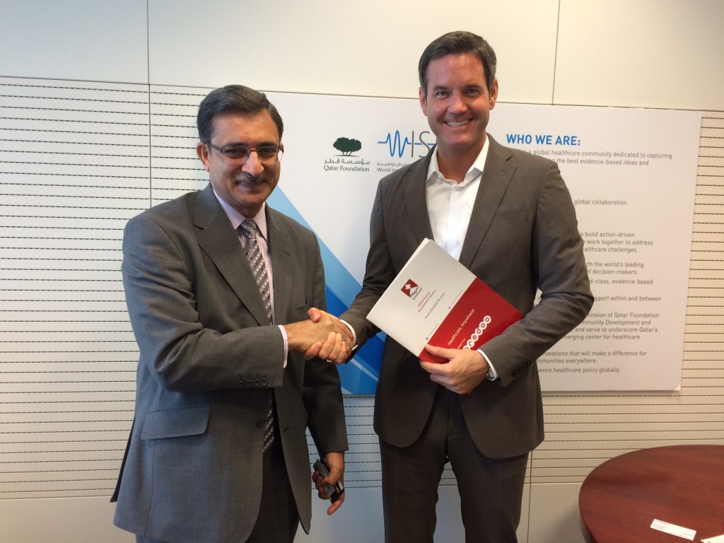 On May 4 2015, Sajjad Kirmani (Founder & CEO, CloudClinik) had an honor to meet Egbert Schillings (CEO,World Innovation Summit for Health) . The World Innovation Summit for Health (WISH) is a global healthcare community dedicated to capturing and disseminating the best evidence-based ideas and practices. Apart from promoting active learning and support within and between communities, it also showcases innovations that will make a difference for healthcare communities everywhere. One of the best things about WISH is that it forges connections and help build action-driven communities of knowledge that will work together to address today’s most pressing global healthcare challenges.